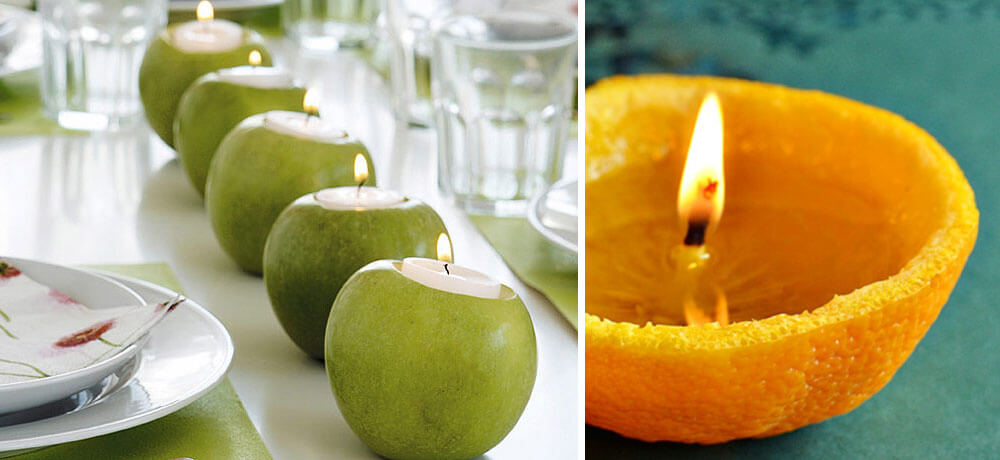 Carve out the fruits with a carving knife and place one of the little candles inside it. It provides a very interesting source of light on your Christmas table.